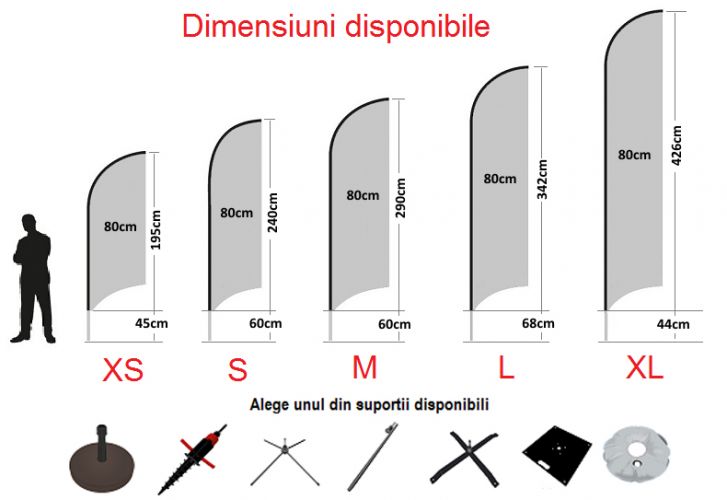 Inaltime totala steag - 300cm - M - panou grafic 80 x 290cm